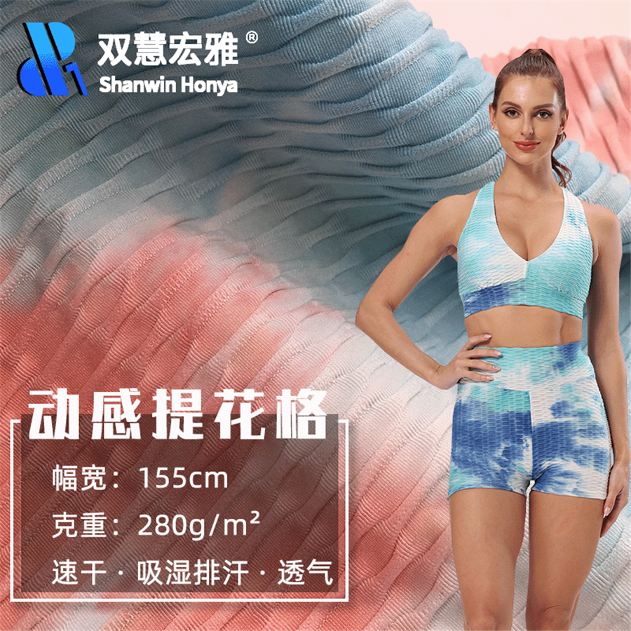 炫彩提花方格泡泡布料户外运动健身高密弹力亲肤透气瑜伽扎染面料